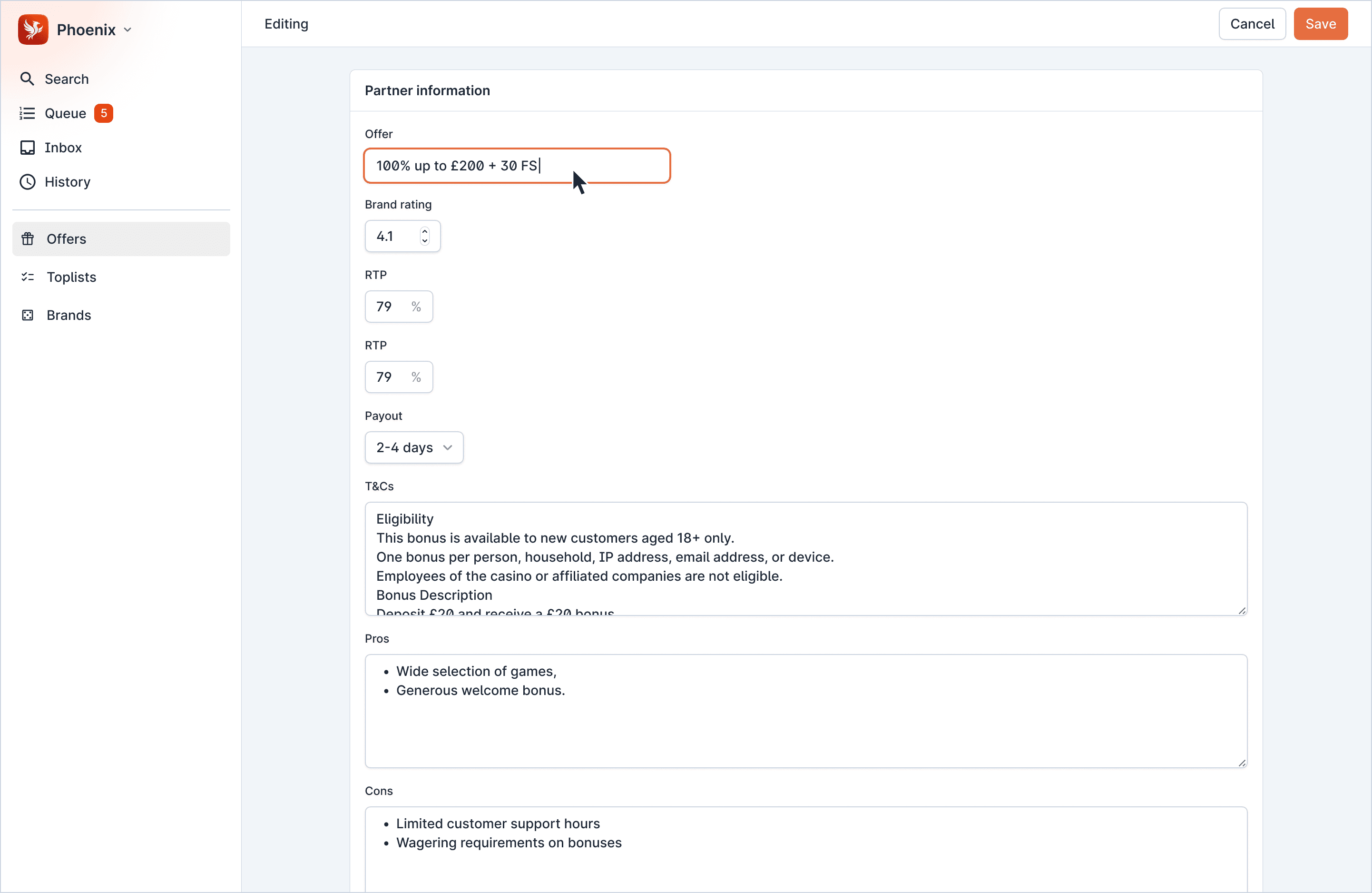 In 2025, I led the redesign of Phoenix Next Gen, an internal tool used by the Commercial team in Legend, to manage and publish partner, offer, and toplist data.