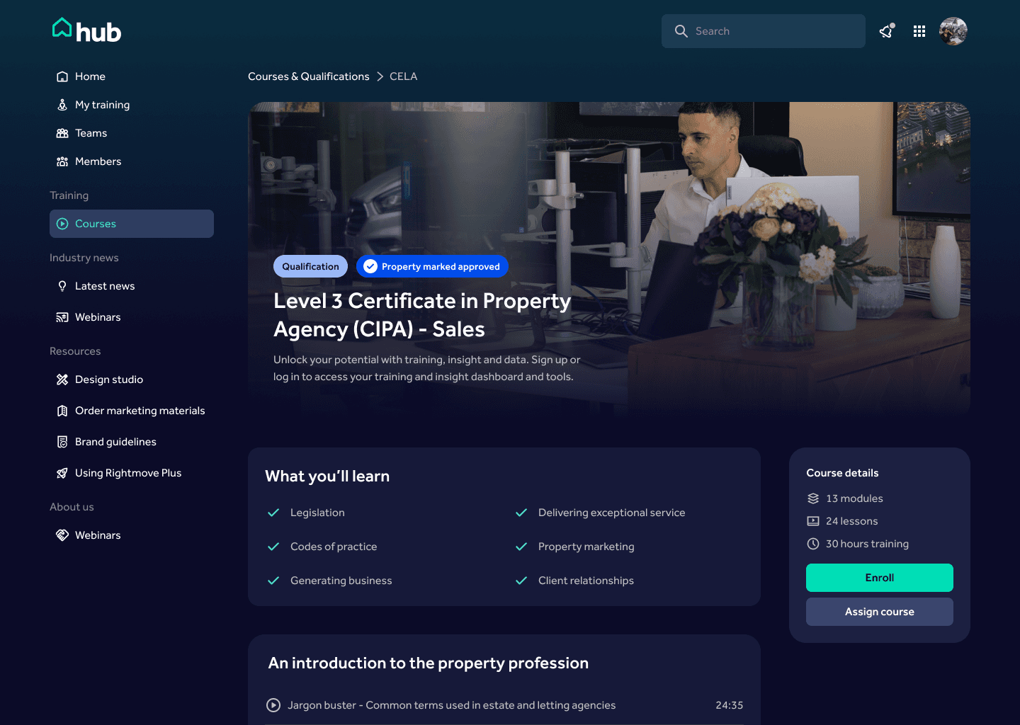 In 2025, for the Hub’s 10-year anniversary, I was tasked to redesign it from the ground up. Our goal was to surface the high-value content buried inside it, create scalable systems for the rapidly growing library of training and qualifications, and build a platform that genuinely supports the next generation of estate agents.