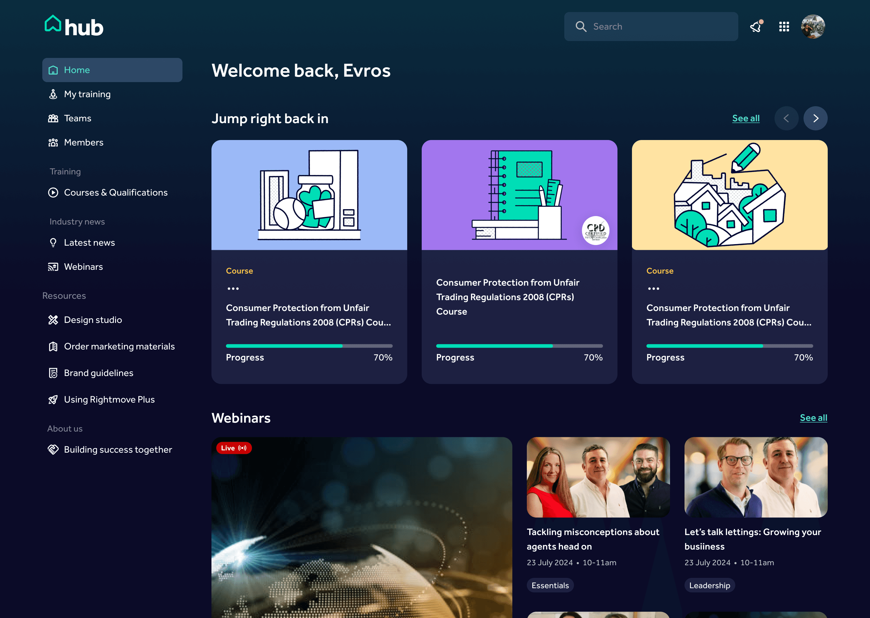The Hub is Rightmove’s training and resource centre, used by over 21,000 Rightmove Plus customers to access webinars, courses, qualifications, and more. Yet, it never had dedicated design support.